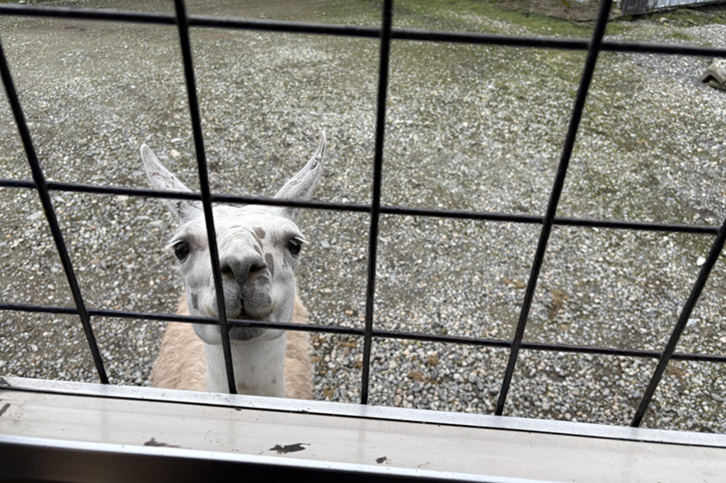 「餌くれるんだろう?」みたいな感じでこっちを見ているラマ。餌を持っていないと知ったら去っていきました。